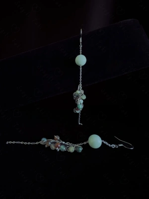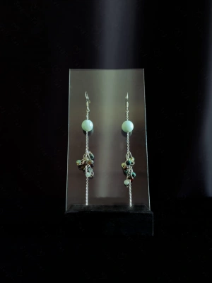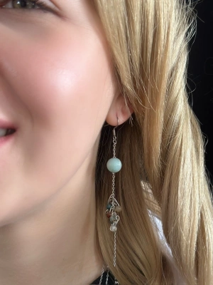 Akik ve Amazonit Doğal Taşlı Çelik Küpe -Sonbahar Serisi