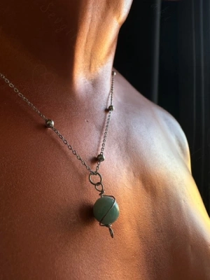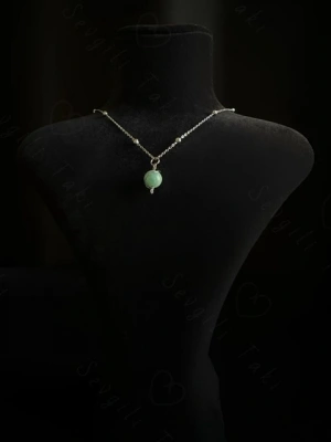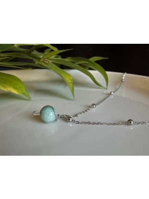 Amazonit Doğal Taşlı Çelik Kolye -Gezegen Serisi