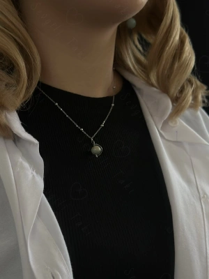 Gezegen Doğal Taş Çelik Kolye -Sevgili Takı Koleksiyonu