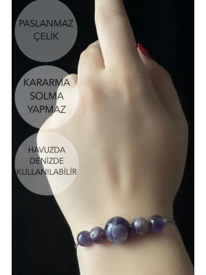 Ametist Doğal Taşlı Ayarlanabilir Çelik Bileklik -Karma Serisi