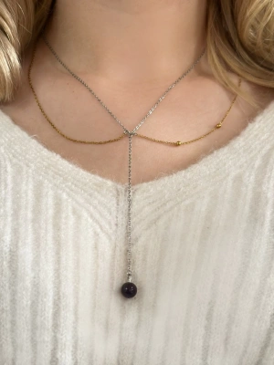 Y Model Ametist Doğal Taşlı Çelik Kolye | Ida Serisi