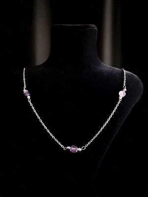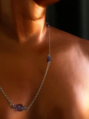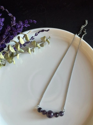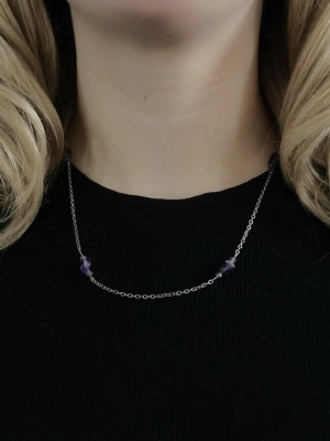 Ametist Doğal Taşlı Çelik Kolye -Karma Serisi
