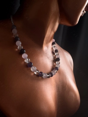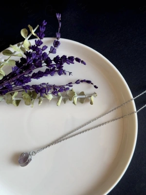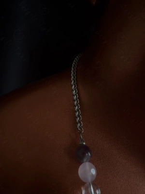 Ametist ve Kuvars Doğal Taşlı Çelik Kolye -Pure Serisi