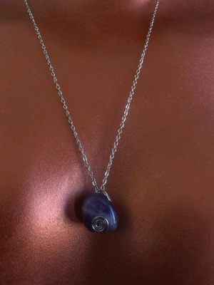 Ametist Doğal Taşlı Çelik Kolye | Sevgili Takı Koleksiyonu