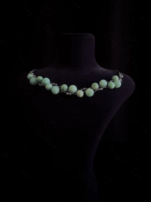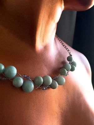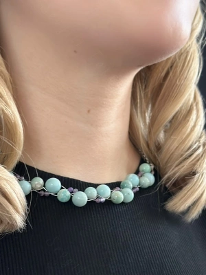 Ametist ve Amazonit Doğal Taşlı Örgülü Çelik Kolye | Sevgili Takı Koleksiyonu