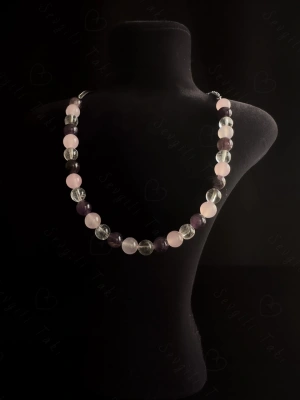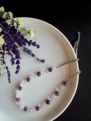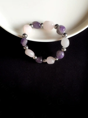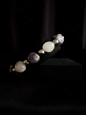 Ametist ve Pembe Kuvars Doğal Taşlı Bileklik -Ida Serisi