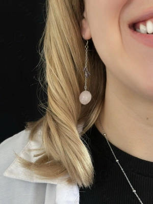 Pembe Kuvars ve Ametist Doğal Taşlı Çelik Küpe -Sevgili Takı Koleksiyonu