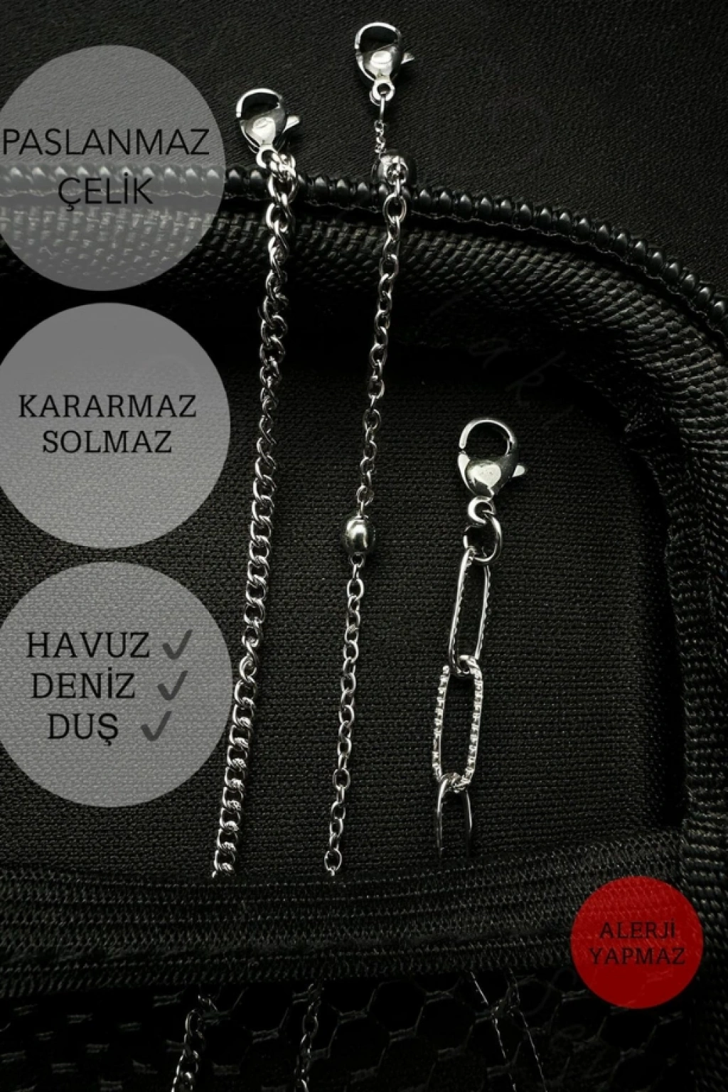 Üç Zincirli Çelik Bileklik | Çelik Zincir Bileklik | Kararma Yapmaz | ST Serisi