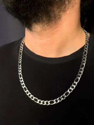 Kalın Figaro Model Yassı Çelik Zincir Kolye | Thun Serisi