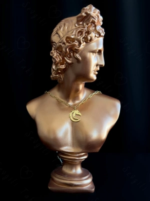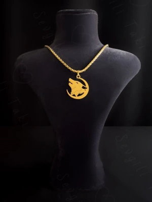 Kurt Başlı Kobra Zincirli Gold Çelik Kolye | Ata Serisi