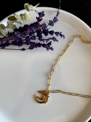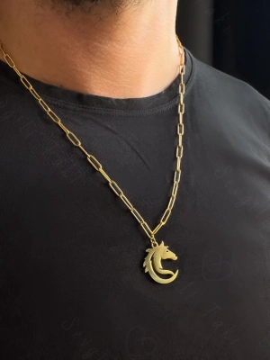 Paperclip(Ataş) Model Zincir At Charmlı Gold Çelik Kolye | Ata Serisi
