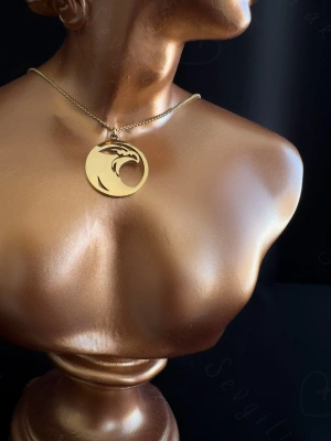 Şahin Başlı Gold Çelik Kolye | Horus Serisi