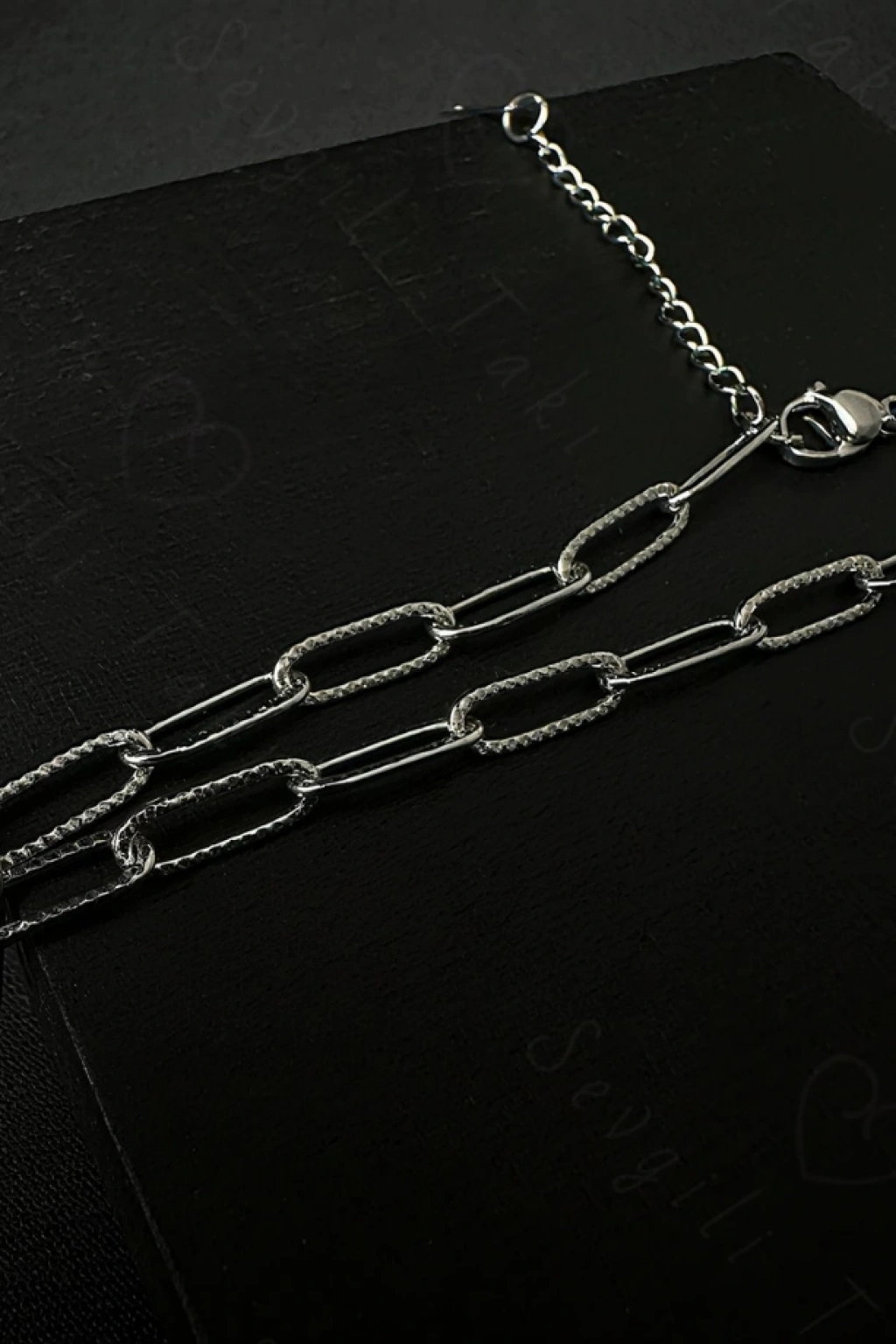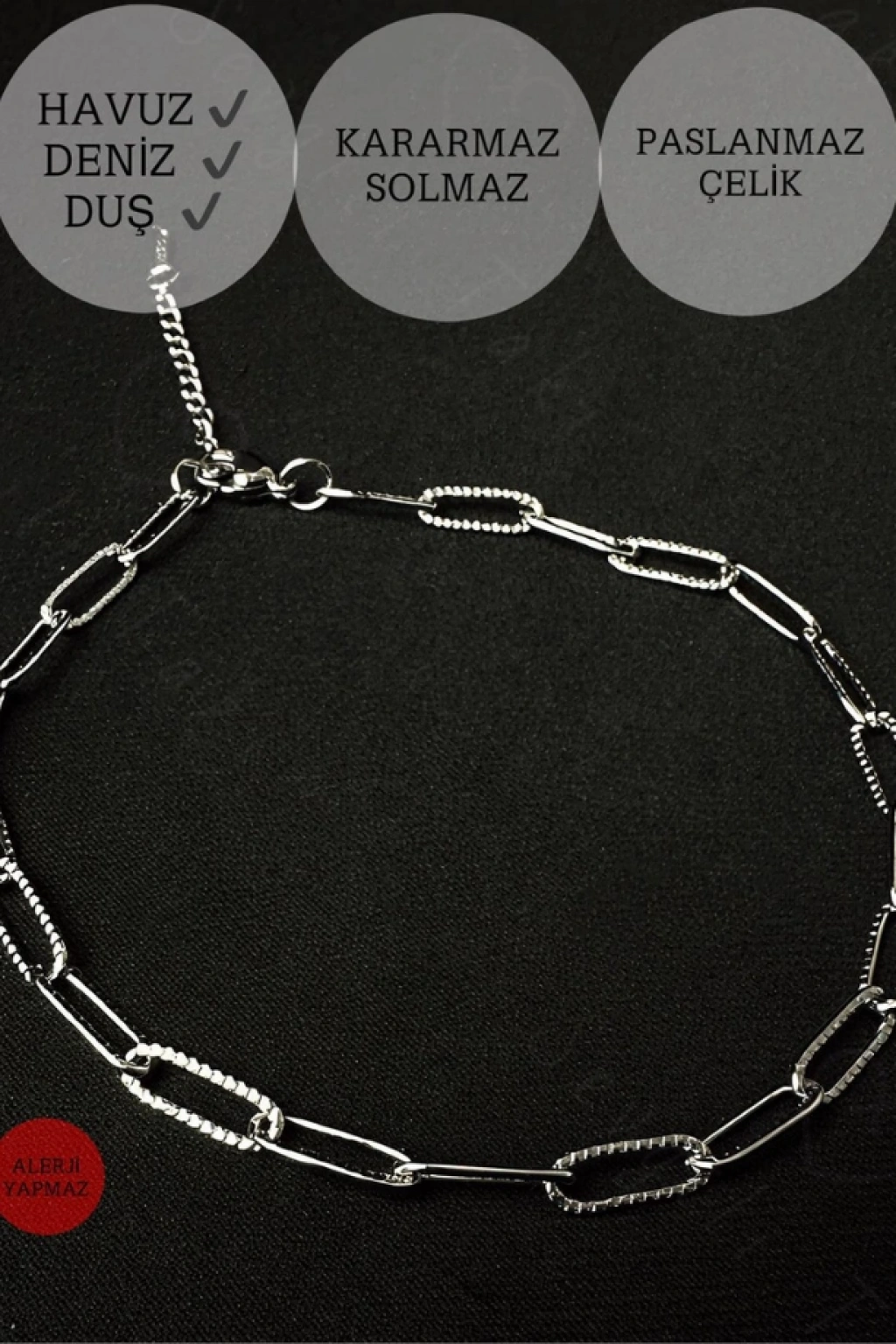 Zarafeti ve modern tasarımı bir araya getiren Parlak Kabartmalı Paperclip (Ataş) Zincir Silver Renk Çelik Halhal | Sevgili Takı Koleksiyonu, şıklığınızı her an yansıtmanız için tasarlandı. Gümüş renkli paslanmaz çelik yapısı sayesinde kararma yapmaz, uzun süre parlaklığını korur. Ayarlanabilir formu sayesinde her bilek ölçüsüne rahatlıkla uyum sağlar. Günlük kullanımda ve özel davetlerde kombinlerinize sofistike bir dokunuş katar.