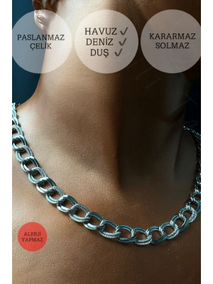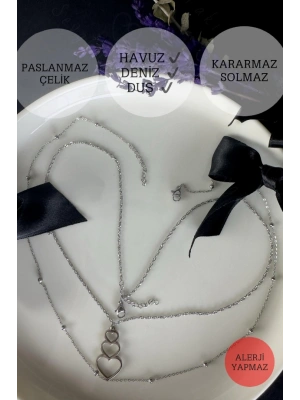 Yeşil Papatya Charmlı Çelik Kolye ve Bileklik Takımı | Nehir SerisiKolye ve bileklikten oluşan takım, şıklığı ve dayanıklılığı bir arada sunar. Kolyenin uzunluğu 42-43 cm, bilekliğin uzunluğu ise 17-18 cm olup, her iki parçanın da uzunluğu 3 cm uzatma aparatı ile ayarlanabilir. Ürünlerimizin tamamı yüksek kaliteli paslanmaz çelikten üretilmiştir, bu da uzun ömürlü kullanım ve parlaklığın korunmasını sağlar. Yeşil papatya charmlı çelik kolye ve bileklik takımı ile Nehir Serisi'nin doğal güzelliğini tarzınıza yansıtın ve günlük şıklığınızı tamamlayın. Her siparişiniz paketleme ekiplemizce özenle hediye paketi yapılarak size özel hazırlanmaktadır.