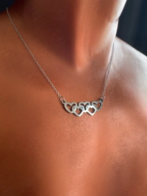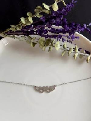 İç İçe Kalp Charmlı Silver Çelik Kolye | Mia Serisi