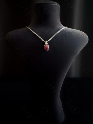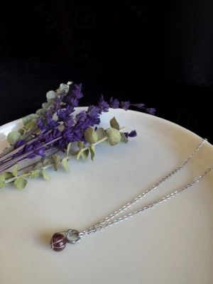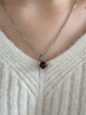 Granat Doğal Taşlı Çelik Kolye -Pure Serisi