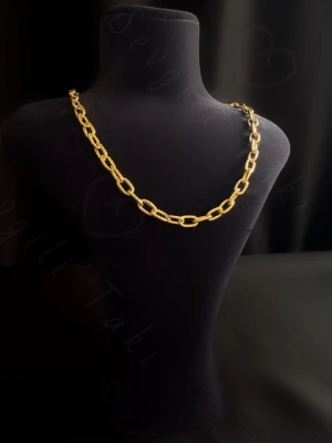 Kabartma Zincirli Gold Çelik Kolye | Terapi Serisi