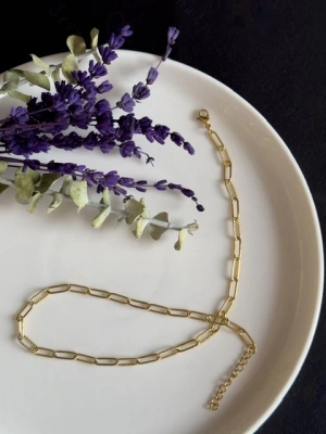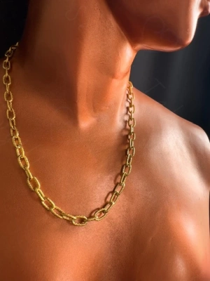 Paperclip Kabartma Choker Gold Çelik Zincir Kolye | Choker Serisi