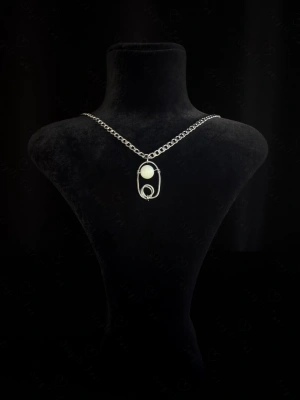 Ay Doğal Taşlı Çelik Kolye -Ay Serisi