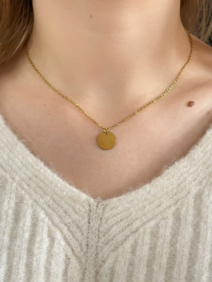 Oval Charmlı Gold Çelik Kolye -Karma Serisi