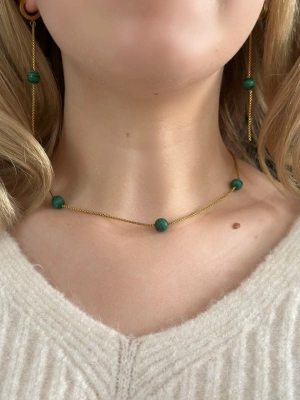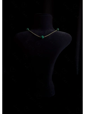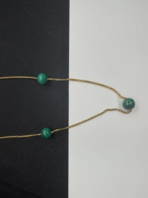 Malahit Doğal Taşlı Gold Çelik Kolye | Vega Serisi