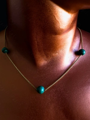 Turkuaz Doğal Taşlı Gold Çelik Kolye -Sirius Serisi