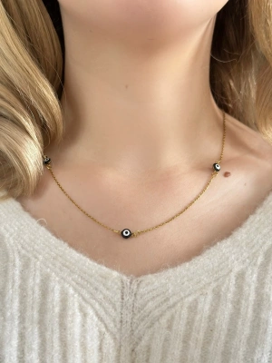 Nazar Boncuklu Gold Çelik Kolye -777 Serisi