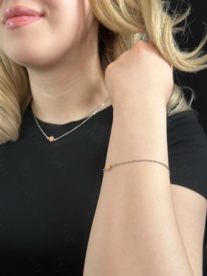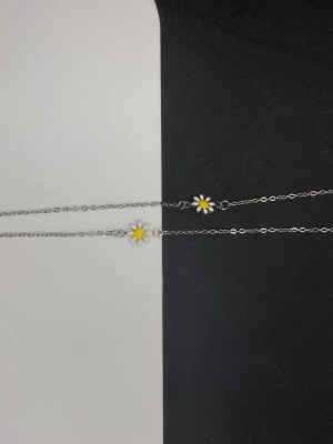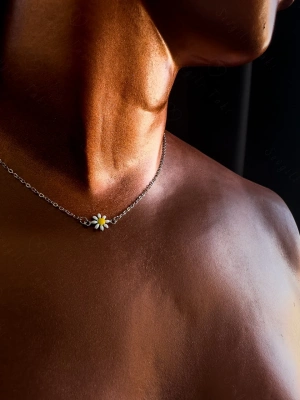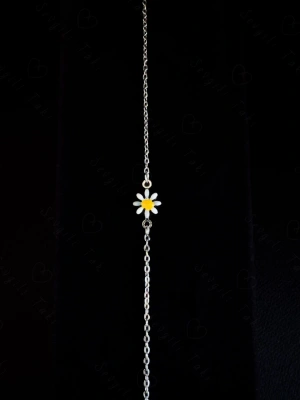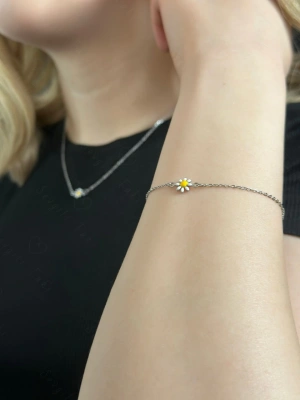 Beyaz Papatya Charmlı Çelik Kolye ve Bileklik Takımı | Mutluluk Serisi