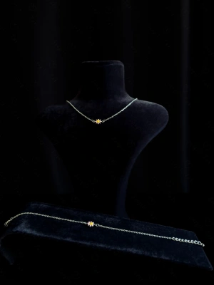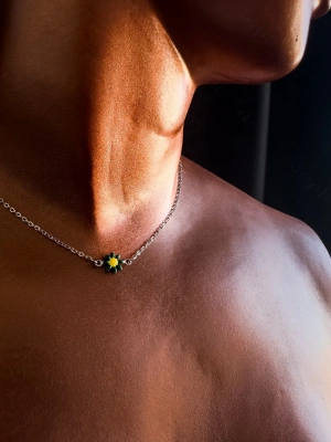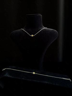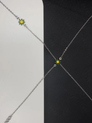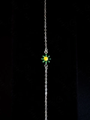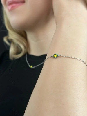 Yeşil Papatya Charmlı Çelik Kolye ve Bileklik Takımı | Nehir Serisi