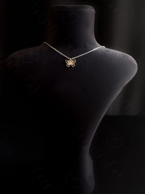 Kelebek Charmlı Çelik Kolye -Vega Serisi