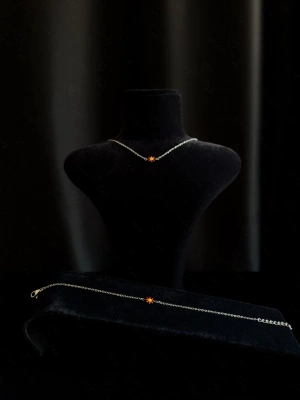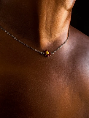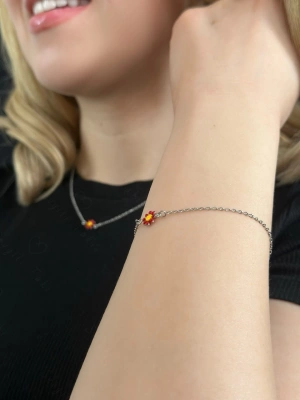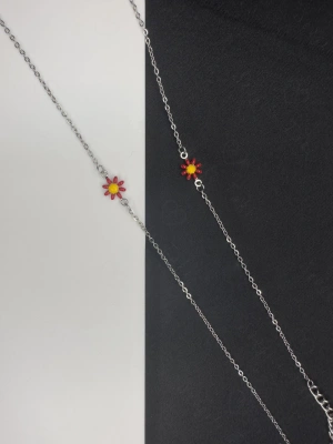 Kırmızı Papatya Charmlı Çelik Kolye ve Bileklik Takımı | Zemheri Serisi