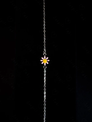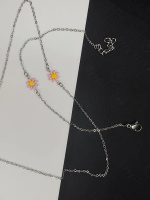 Pembe Papatya Charmlı Çelik Kolye ve Bileklik Takımı | Karma Serisi