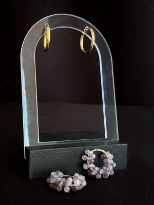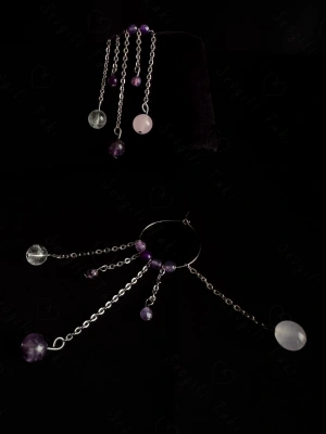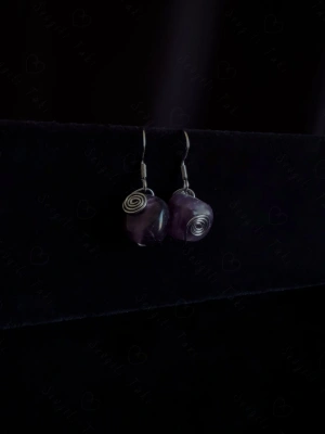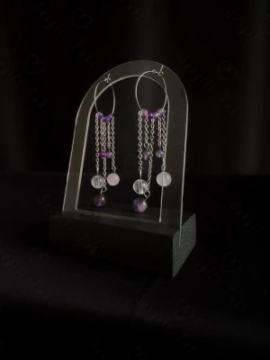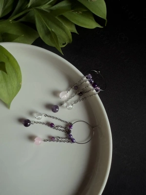 Ametist Kristal Kuvars ve Akik Doğal Taşlı Çelik Küpe -777 Serisi