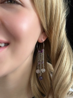 Ametist Doğal Taşlı Çelik Küpe -Sevgili Takı Koleksiyonu