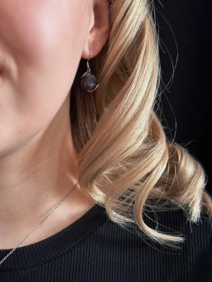 Ametist Doğal Taşlı Çelik Küpe -Methus Serisi