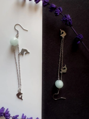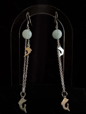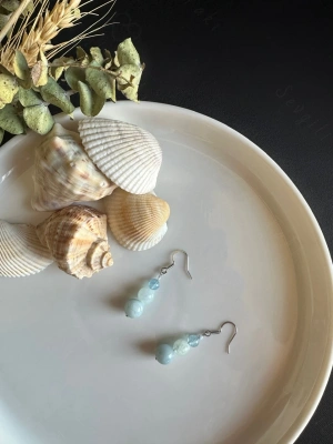 Aquamarin Doğal Taşlı Balina Charmlı Çelik Küpe-Vishuddha Serisi