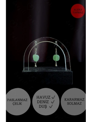 Opal Doğal Taşlı Çelik Küpe -Sevgili Takı Koleksiyonu