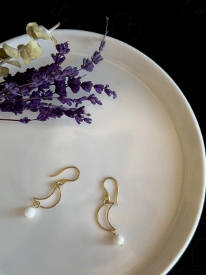 Ay Doğal Taşlı Çelik Küpe -Apollo Serisi