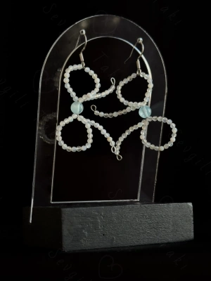 Aquamarin Doğal Taşlı Çelik Küpe-777 Serisi