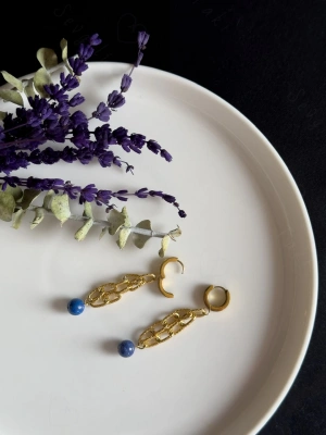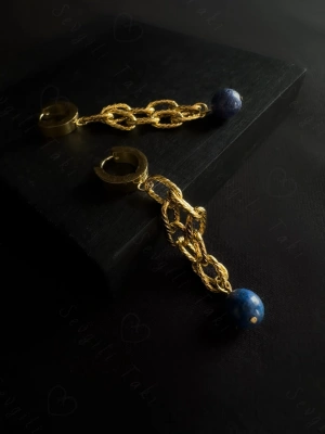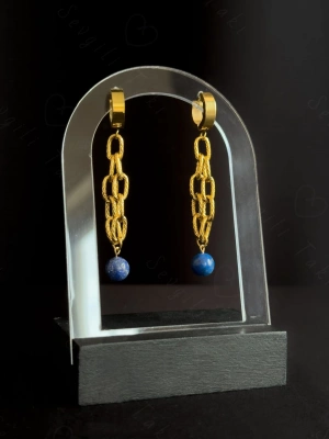 Lapis Lazuli Doğal Taşlı Gold Çelik Küpe | Sevgili Takı Koleksiyonu