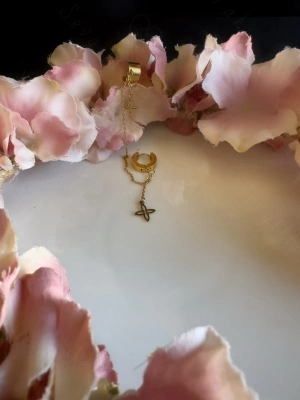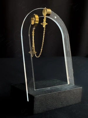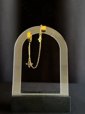 Lotus Detaylı Tragus / Kıkırdak Bağlantılı Gold Çelik Küpe | Şans Serisi (Bir Adet)