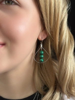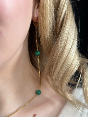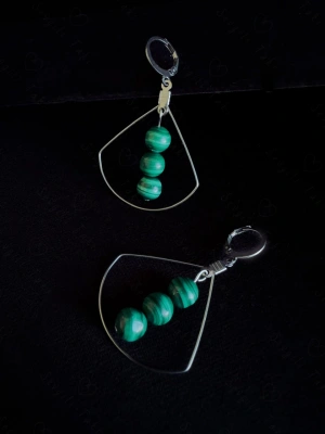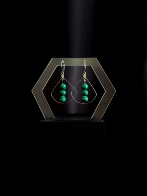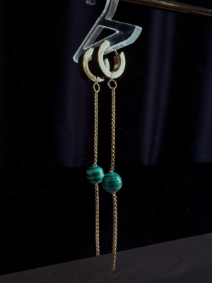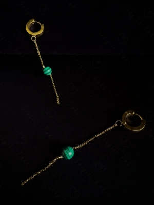 Malahit Doğal Taşlı Çelik Küpe -Vega Serisi
