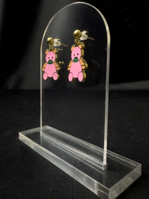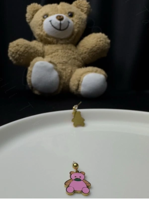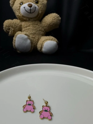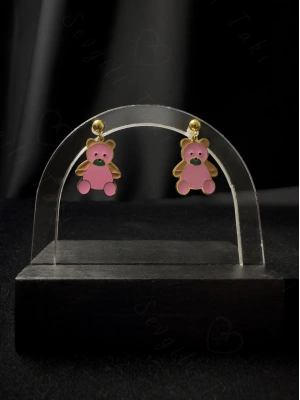 Pembe Ayıcıklı Çocuk Çelik Küpe -Pofuduk Serisi