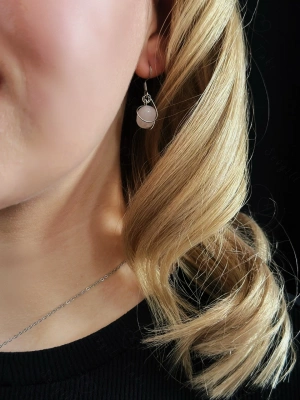 Pembe Kuvars Doğal Taşlı Çelik Küpe -Sonbahar Serisi