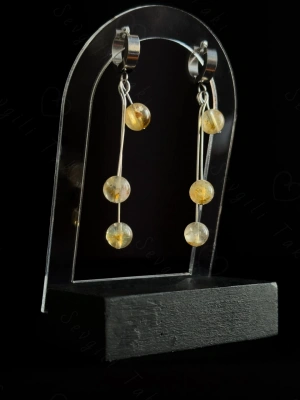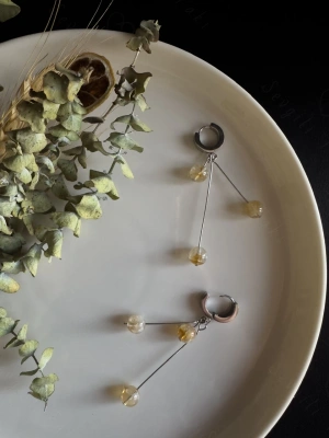 Sitrin Doğal Taşlı Çelik Küpe - Love Serisi