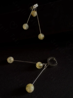 Güneş ve Ay Doğal Taşlı Çelik Küpe -Vega Serisi