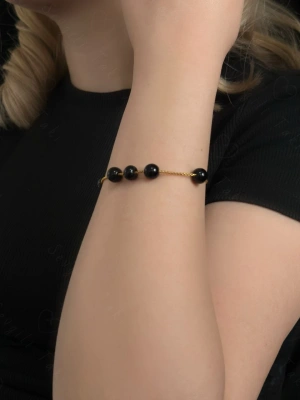 Oniks Doğal Taşlı Çelik Bileklik -Vega Serisi