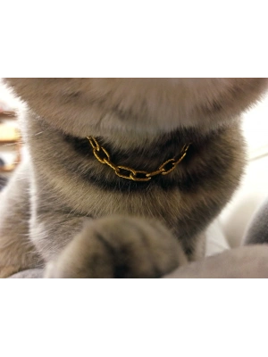Paperclip Zincirli Gold Çelik Kedi Tasması/Aksesuarı | Meow Serisi
