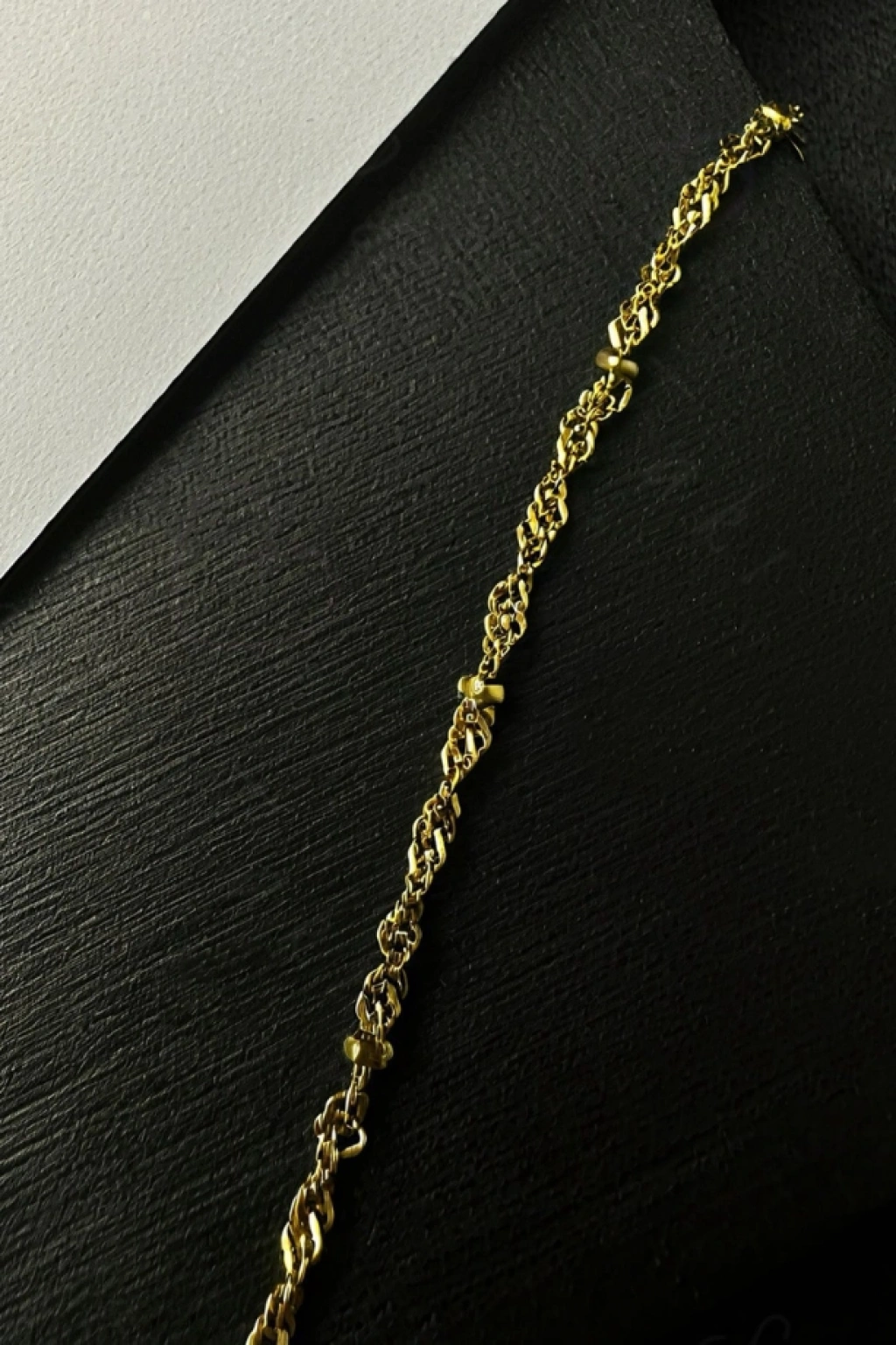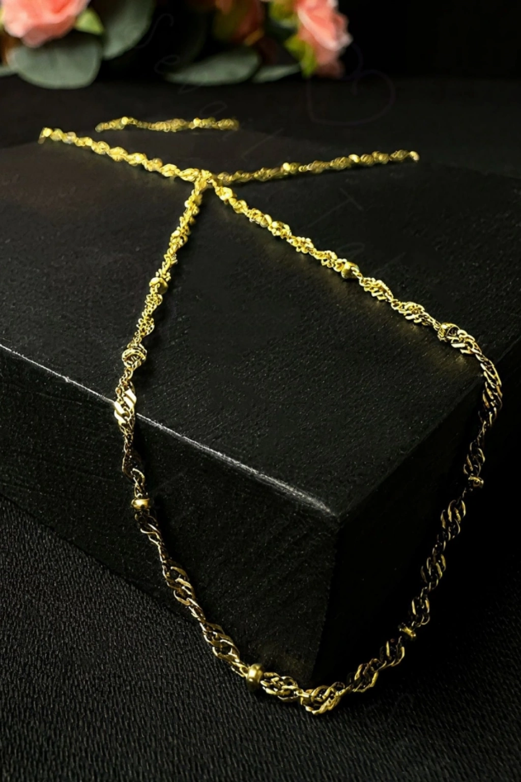 Modern zarafetle özgün tasarımı buluşturan Toplu Burgu Zincir Silver Renk Çelik Şahmeran, Karma Serisi’nin dikkat çekici parçalarından biridir. El üzerinde zarif bir şekilde uzanan burgu zincir formu, modern takı anlayışını yansıtırken aynı zamanda klasik bir dokunuş sunar.