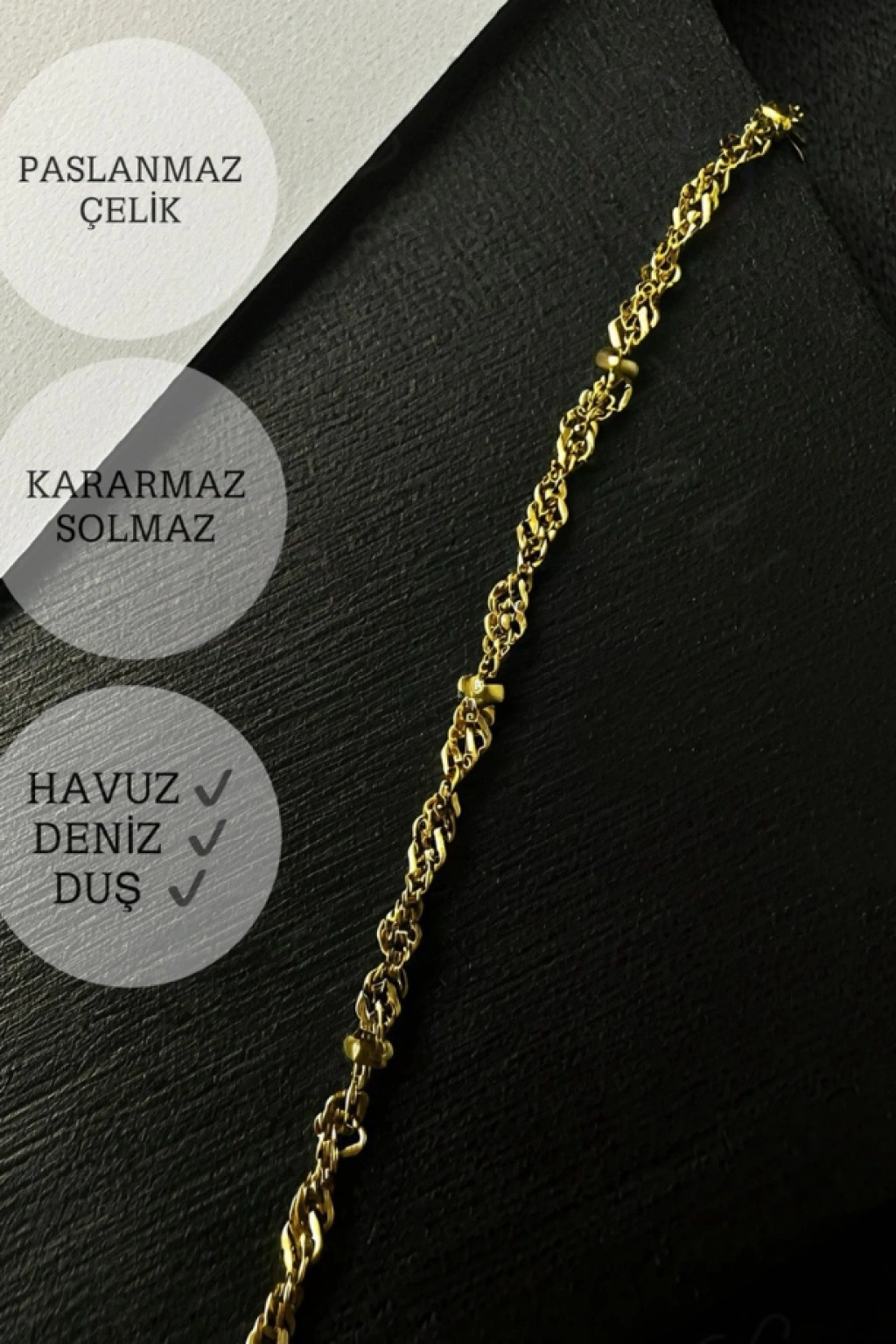 Parlak silver renk paslanmaz çelik malzemeden üretilmiştir; kararma yapmaz, uzun süre parlaklığını korur ve cilt dostudur. Günlük kullanımda da özel davetlerde de stilinizi tamamlayan güçlü bir aksesuar olarak öne çıkar.